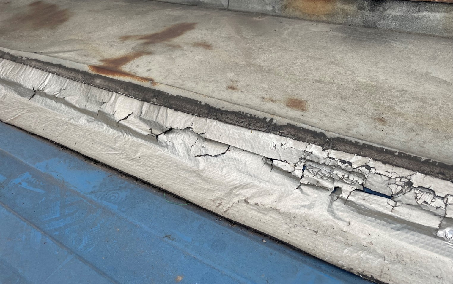 ④有很多的人用丁基膠帶粘貼彩鋼瓦屋面的搭接縫,但是經過實際驗證,丁基膠帶在彩鋼瓦表面粘貼上基本兩三年就不行了,就會開裂了,以下是丁基膠帶粘貼了才兩年就開裂的情況,根據實際使用驗證,所以不建議彩鋼瓦表面使用丁基膠帶,因為耐久性差。