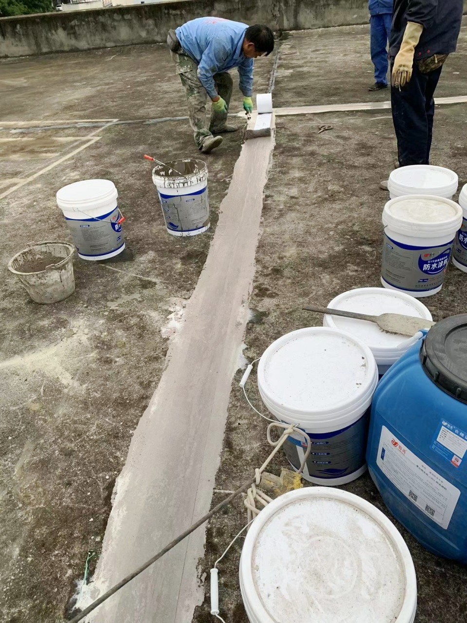 隨后,我們在整個屋面上滿滾涂刷Ⅰ型聚合物水泥防水涂料,以形成均勻的防水層。接著,又滿鋪貼縫織聚酯布,再次滿滾涂刷Ⅰ型聚合物水泥防水涂料。這種反復的涂刷和鋪設,使得防水層更加均勻緊密,有效地提高了屋頂的防水性能。