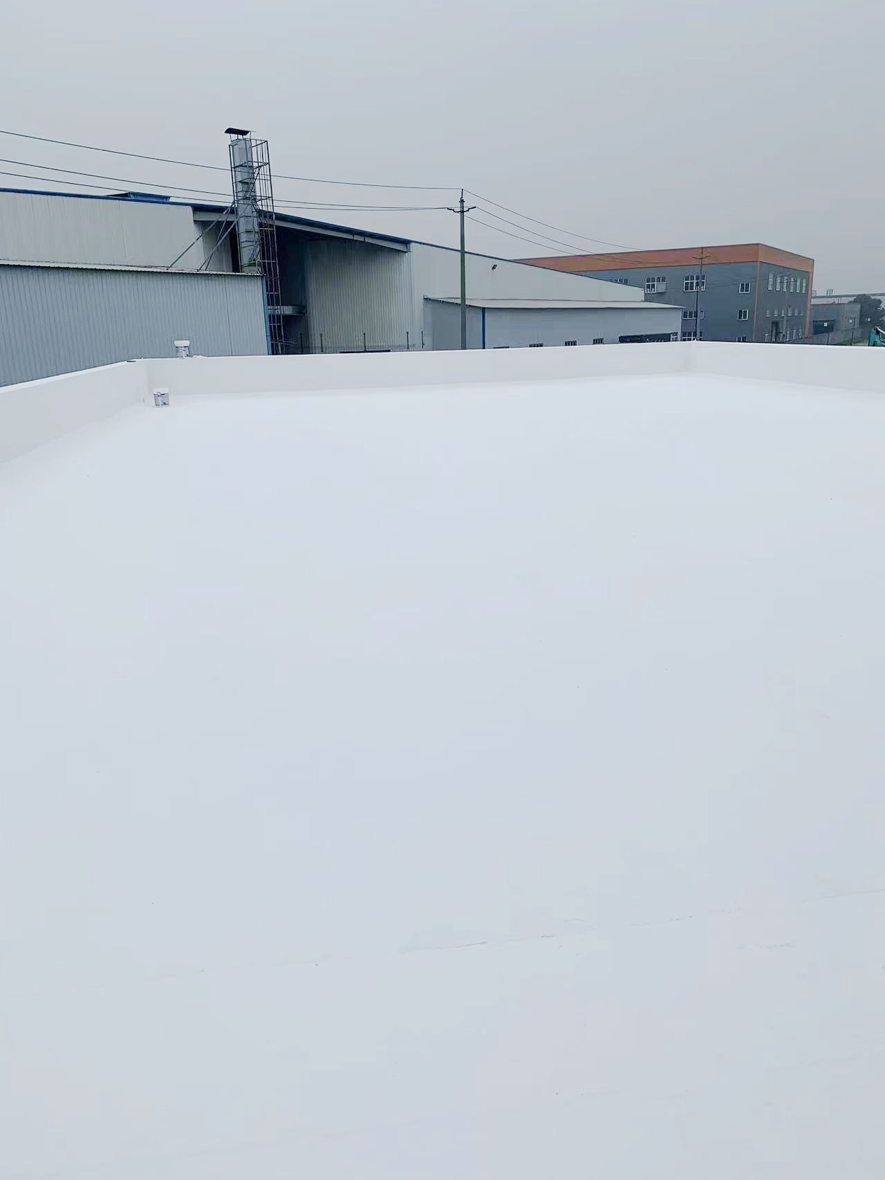 最后,待涂料干燥后,表面再滿滾涂刷(或噴涂)一道SYR金屬屋面防水涂料,形成一層外露型防水保護膜,進一步增強了防水效果。整個施工過程產生的垃圾被及時清理干凈,確保了施工現場的整潔和衛生。