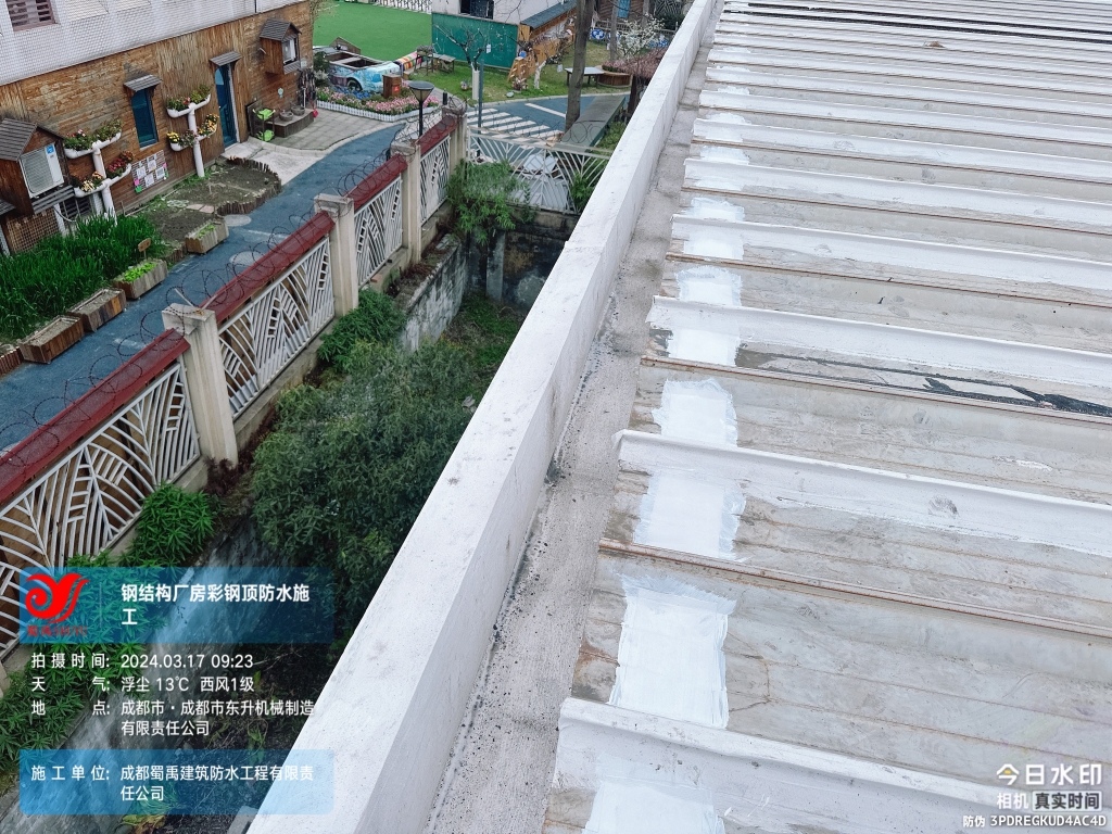 經過成都蜀禹建筑防水工程有限責任公司的精心施工,成都市東升機械制造有限責任公司的廠房彩鋼頂及天溝防水補漏工程取得了顯著的成果。處理后的廠房防水性能得到了顯著提升,客戶對此表示非常滿意。
