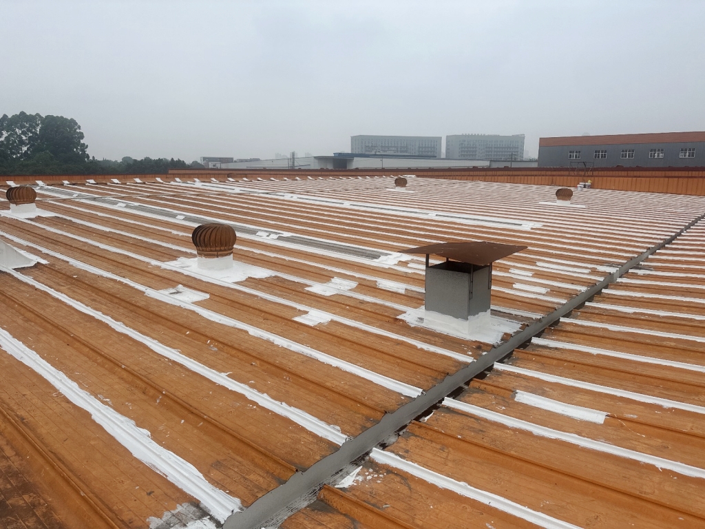 成都蜀禹建筑防水工程有限責(zé)任公司憑借豐富的防水施工經(jīng)驗(yàn)和專(zhuān)業(yè)的技術(shù)團(tuán)隊(duì),受邀對(duì)該廠房進(jìn)行了全面的現(xiàn)場(chǎng)勘查。經(jīng)過(guò)細(xì)致的檢查與分析,我們發(fā)現(xiàn)漏水根源在于彩鋼瓦屋面的搭接縫、固定螺釘以及屋頂風(fēng)機(jī)周邊等細(xì)微縫隙處理不當(dāng),導(dǎo)致雨水滲透至表面彩鋼板下方的夾層中,最終在天溝邊緣滴落至地面。
