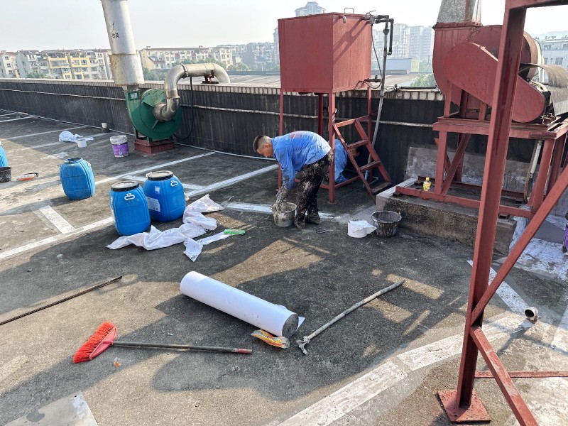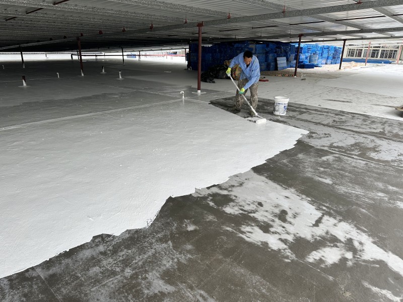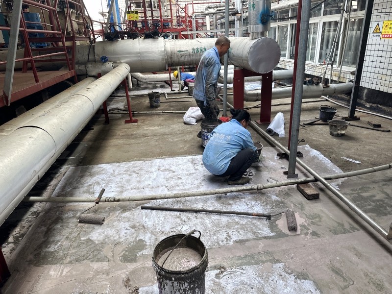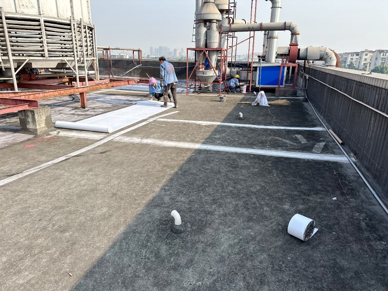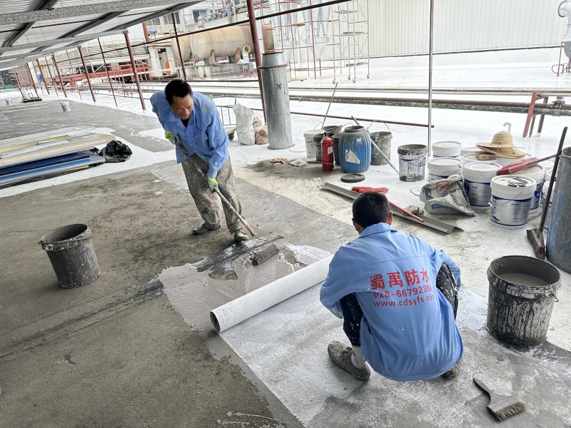 施工過程中,蜀禹防水公司的專業團隊首先清理了屋頂基層表面的雜物,確保施工面干凈、平整。然后,在基層表面涂刷了一層混凝土液體硬化劑,以增強基層的強度和硬度,為后續防水層的施工打下堅實的基礎。
