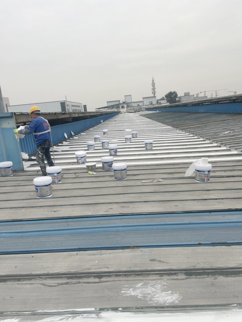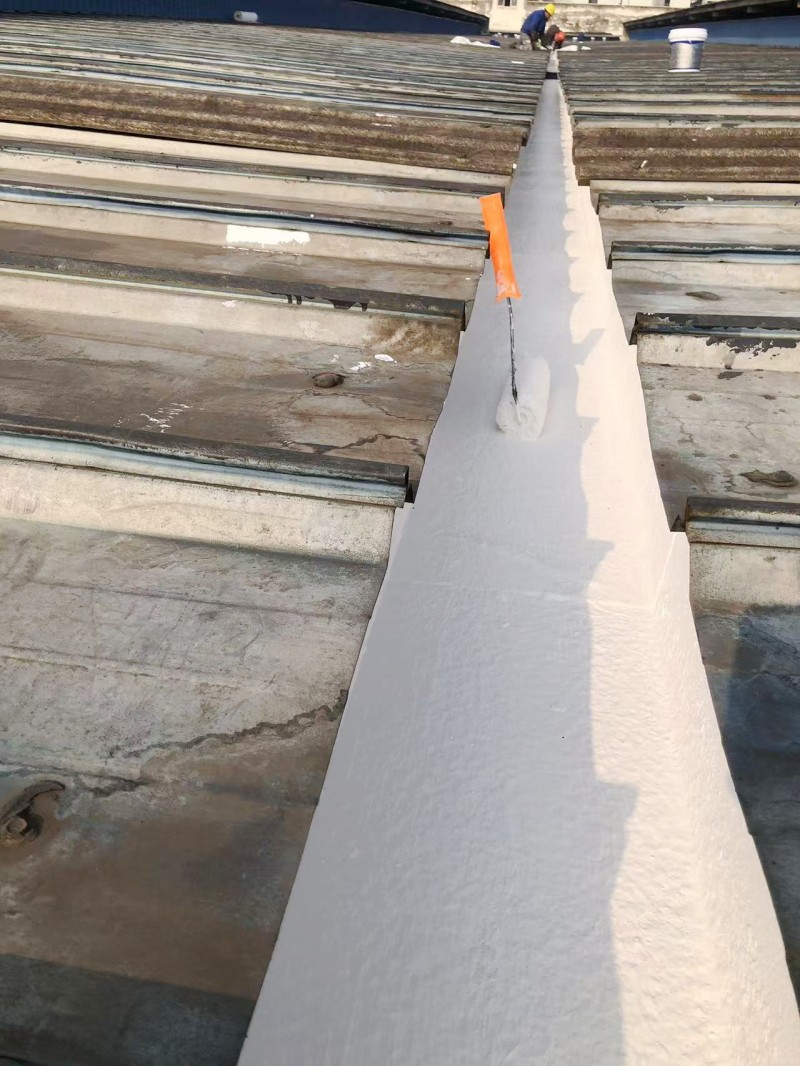 重點部位處理:針對彩鋼瓦搭接縫以及固定螺釘部位,涂刷 15cm 寬的 SYR 金屬屋面專用防水涂料,形成初步的防水屏障。隨后,在這些部位鋪貼防水專用縫織聚酯布,利用聚酯布的高強度和良好的延展性,增強防水效果,防止因屋面變形導致的開裂漏水。接著,在搭接縫和固定螺釘表面再涂刷第二遍 SYR 金屬屋面專用防水涂料,進一步鞏固防水層。