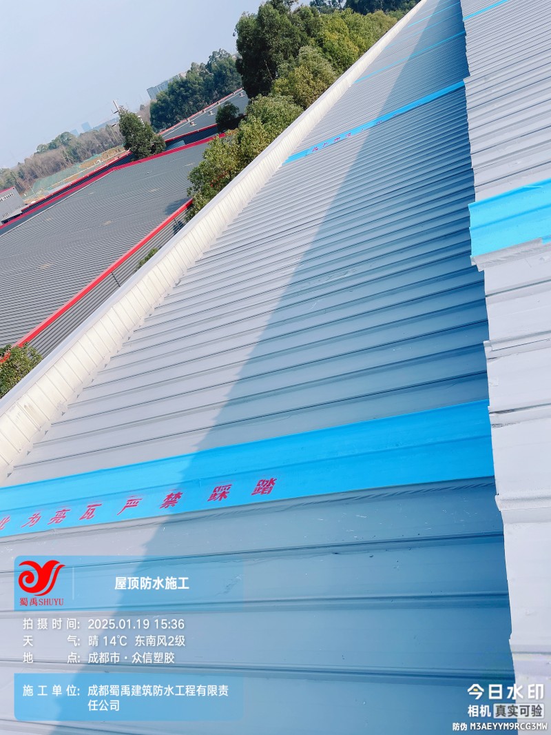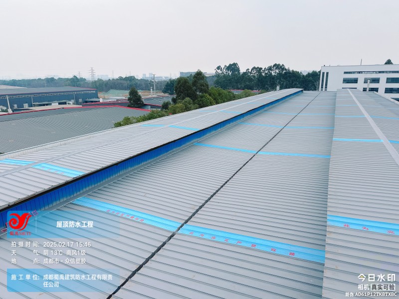 成都眾信塑膠 廠房鋼結構屋面防水補漏工程是成都蜀禹建筑防水工程有限責任公司在工業建筑防水領域的又一成功案例。我們始終堅持以客戶需求為導向,以專業技術為支撐,致力于為客戶提供高品質、可靠的防水解決方案。未來,我們將繼續秉承 “質量更優、服務至上” 的理念,不斷提升技術水平和服務質量,為更多客戶解決屋面防水難題,守護工業建筑的安全與穩定。